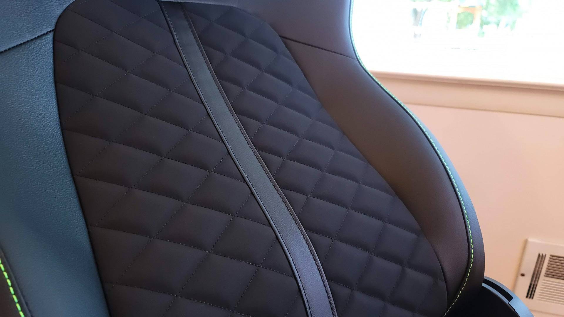 Considere el material: el cuero PU es fácil de limpiar, pero puede ser menos duradero y caliente en pantalones cortos. La tela, como en el campeón de E-Win , es menos un imán de calor pero más difícil de limpiar. La malla, como se ve en el Razer Fujin Pro , es la más transpirable pero puede carecer de la amortiguación de otros materiales.