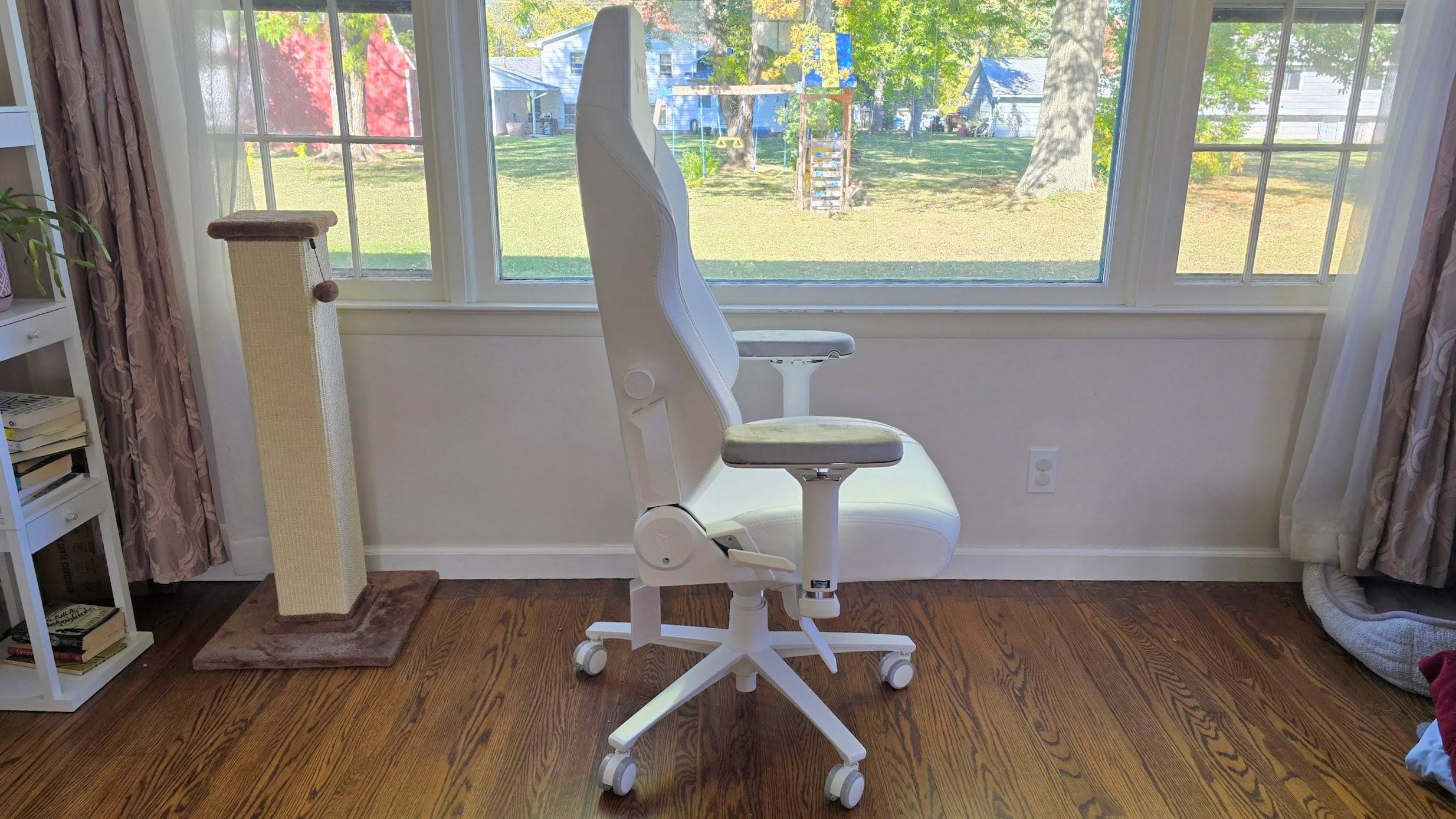 Los reposabrazos se han actualizado, ahora con toppers de brazo de espuma de pluship envueltos en terciopelo con un sistema de fijación magnética. Si alguna vez ha tenido los codos adoloridos por apoyarse en los brazos de la silla, apreciará esta suavidad adicional. Combinada con su almohada de cuello magnético de células de peluche, esta silla es una de las opciones más cómodas disponibles. Con el complemento de reclinable ergonómico opcional, es la única silla de juego en la que he hecho una siesta.