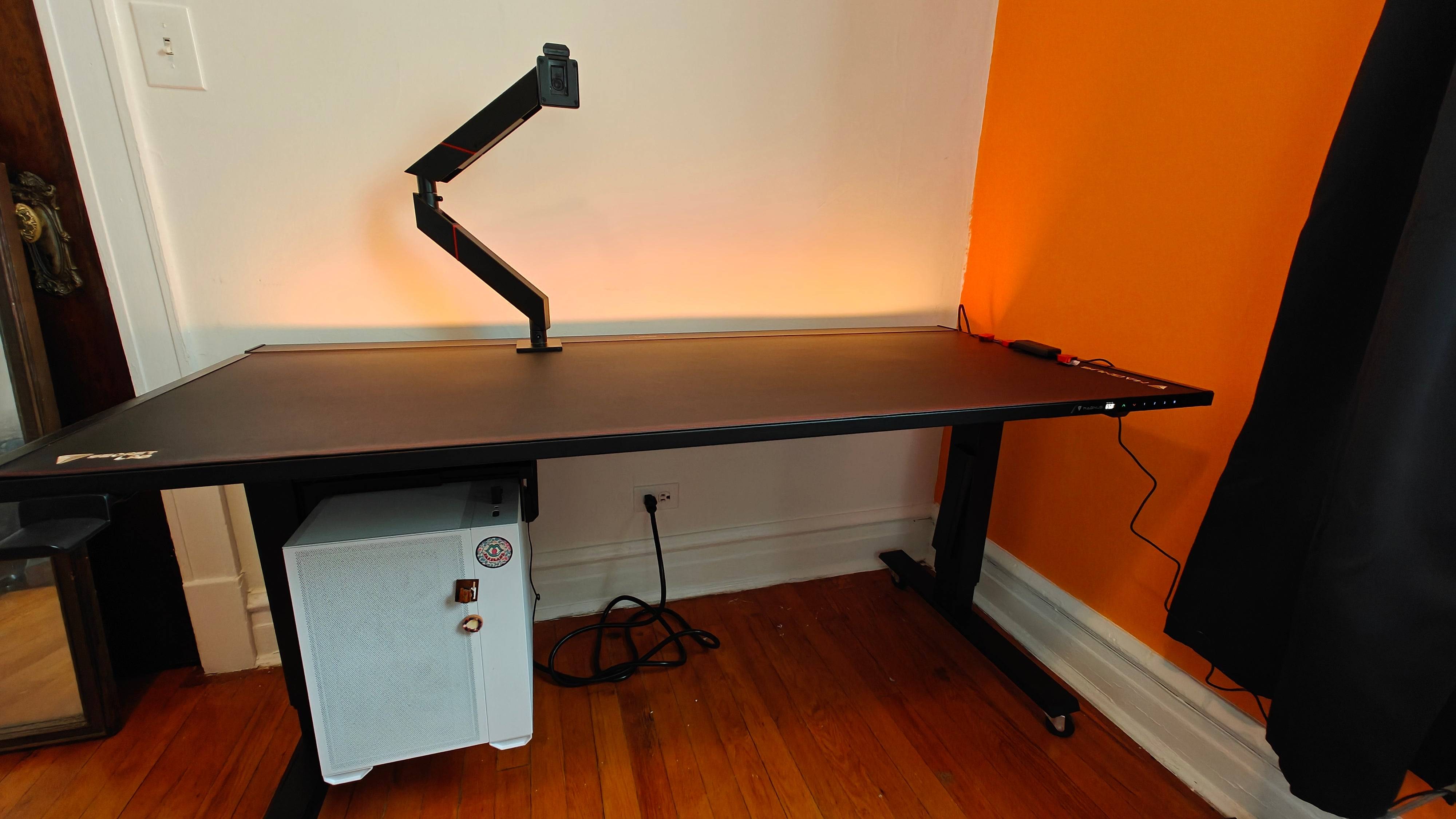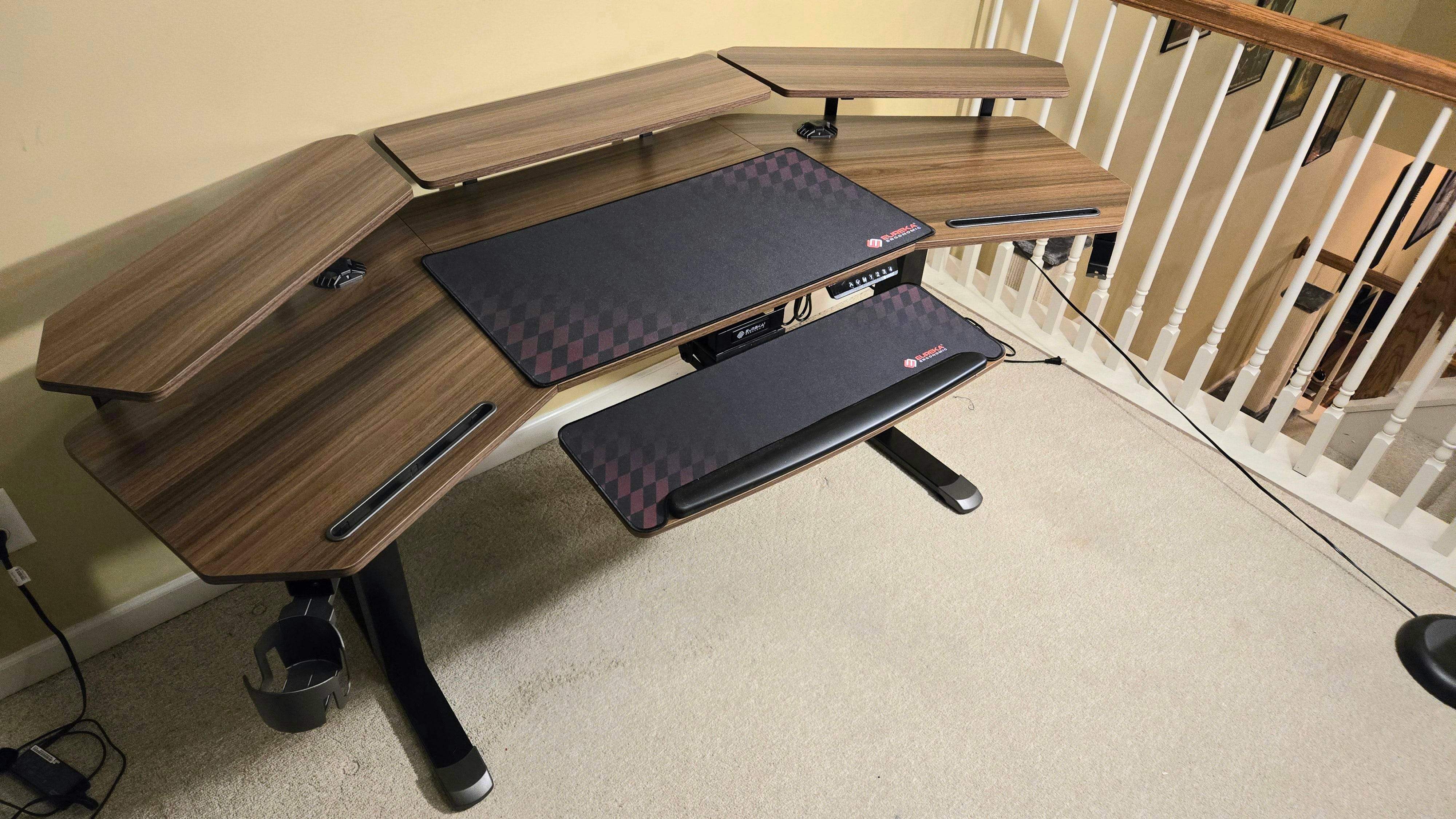 어셈블리가 도전적 일 수 있고 날개 연결이 가장 미학적으로 유쾌하지는 않지만 책상은 견고하고 게임 설정 또는 워크 스테이션에 적합한 세련된 마감 처리됩니다. 케이블 관리 채널, 헤드폰 및 컵 홀더, 태블릿 또는 스마트 폰 용 통합 슬롯이 포함됩니다. 이중 전기 모터는 높이 조정 가능성이 29.5 "에서 48"으로 자리 잡고 앉아 서있는 곳으로 원활한 전환을 허용합니다. 기술로로드 할 때 220 파운드 중량 제한을 염두에 두십시오.