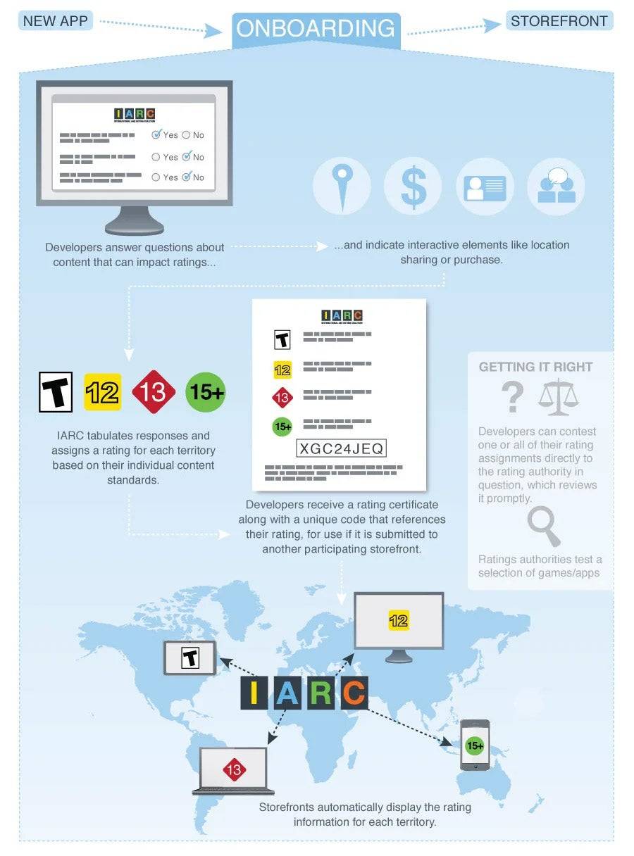 在澳大利亞,IARC工具專門用於數字分配的遊戲。由於每年在iOS App Store等平台上發布的遊戲數量壓倒性,因此該遊戲在2014年被採用。在某些情況下,IARC的自動評級往往高於澳大利亞分類委員會所指定的評級。例如,在2019年,王國來:拯救,我們很高興在澳大利亞被禁止使用,但事實並非如此。