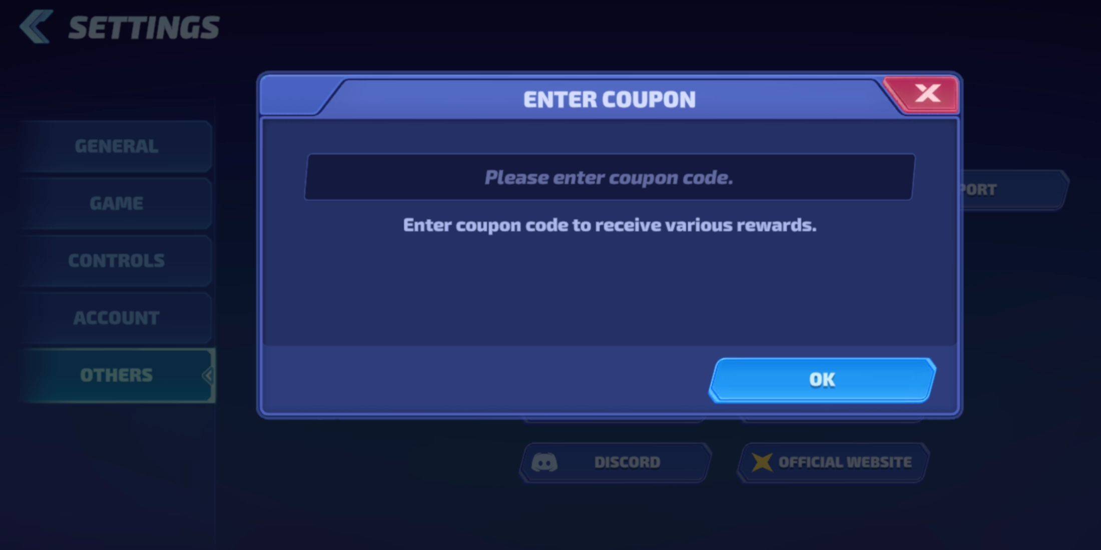 - 輸入您的代碼並點擊“確定”以通過遊戲中的郵件聲明您的獎勵。