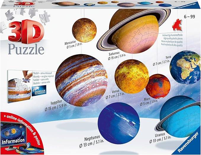 Ravensburger太阳能系统540件-9 Planet 3D拼图拼图套件