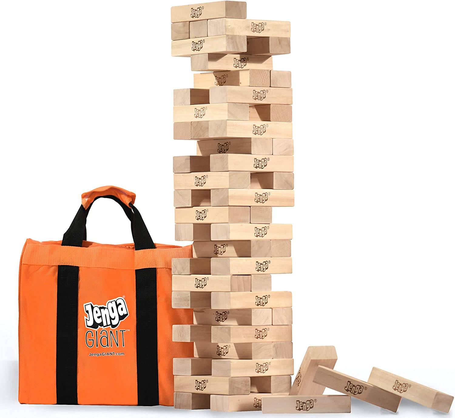 对于在不需要太多空间的情况下测试灵敏性的游戏,巨型Jenga是一个绝佳的选择。标准组有各种尺寸,高4英尺高,为经典游戏增加了兴奋。只需确保不可避免的倒车周围的安全即可。